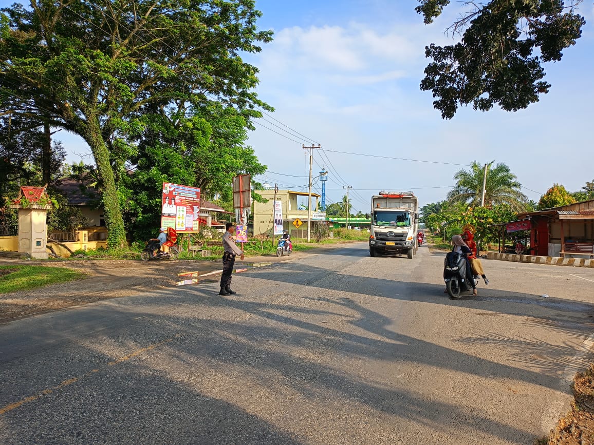 Seperti hari ini, giat di laksanakan di setiap persimpangan yang rawan kecelakaan di Jalan Lintas Timur Kecamatan Pangkalan Lesung.