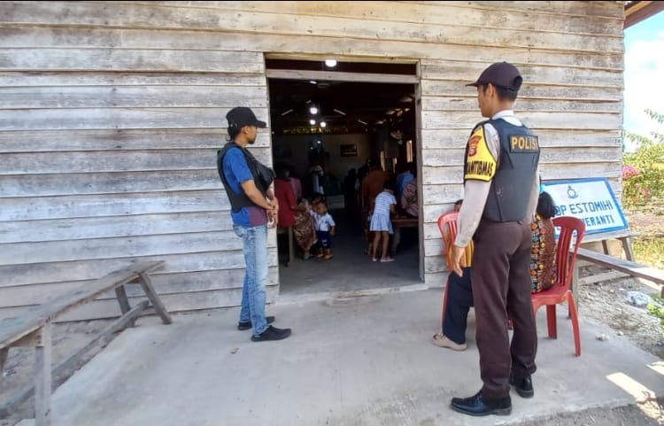 PELALAWAN, NEWSHANTER.COM – Kegiatan pengamanan Ibadah Hari Minggu di Wilayah Hukum Polsek Teluk Meranti, Kabupaten Pelalawan.
