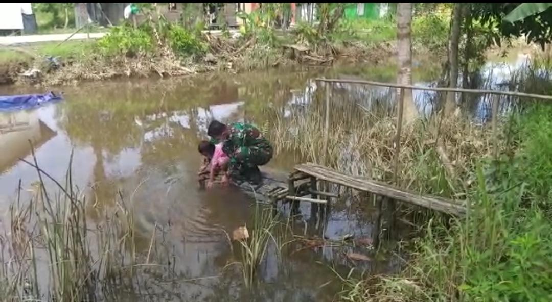 Kapuas,- Selama Kegiatan TNI Manunggal Membangun Desa (TMMD) ke-110 selalu membawa suasana yang begitu akrab. Seperti yang di lakukan oleh Praka Anwar dan anak-anak Desa Saka Lagun, Kecematan Pulau Petak, Kebupaten Kapuas, Selasa (30/3/2021).