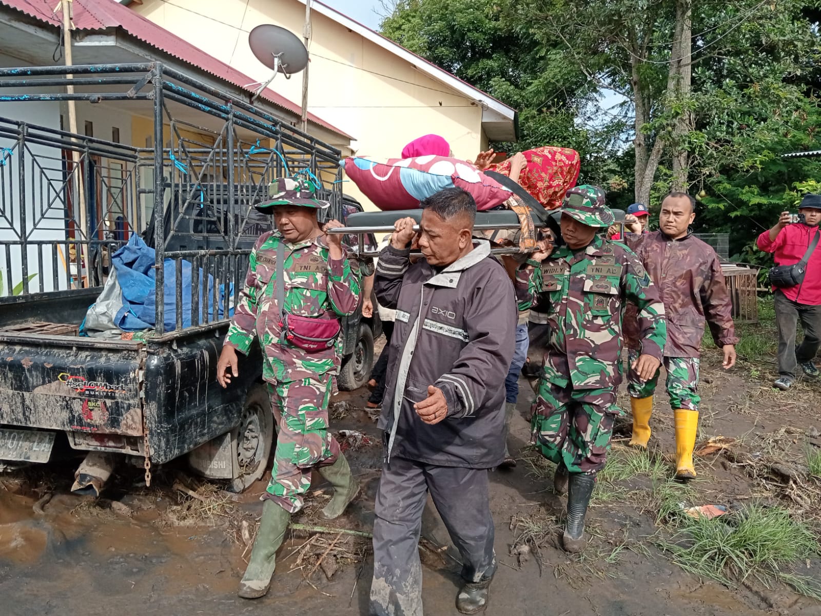 Prajurit TNI AD, Kodim 0304/Agam Bantu Evakuasi Korban Banjir Bandang di Wilayah Kabupaten Agam