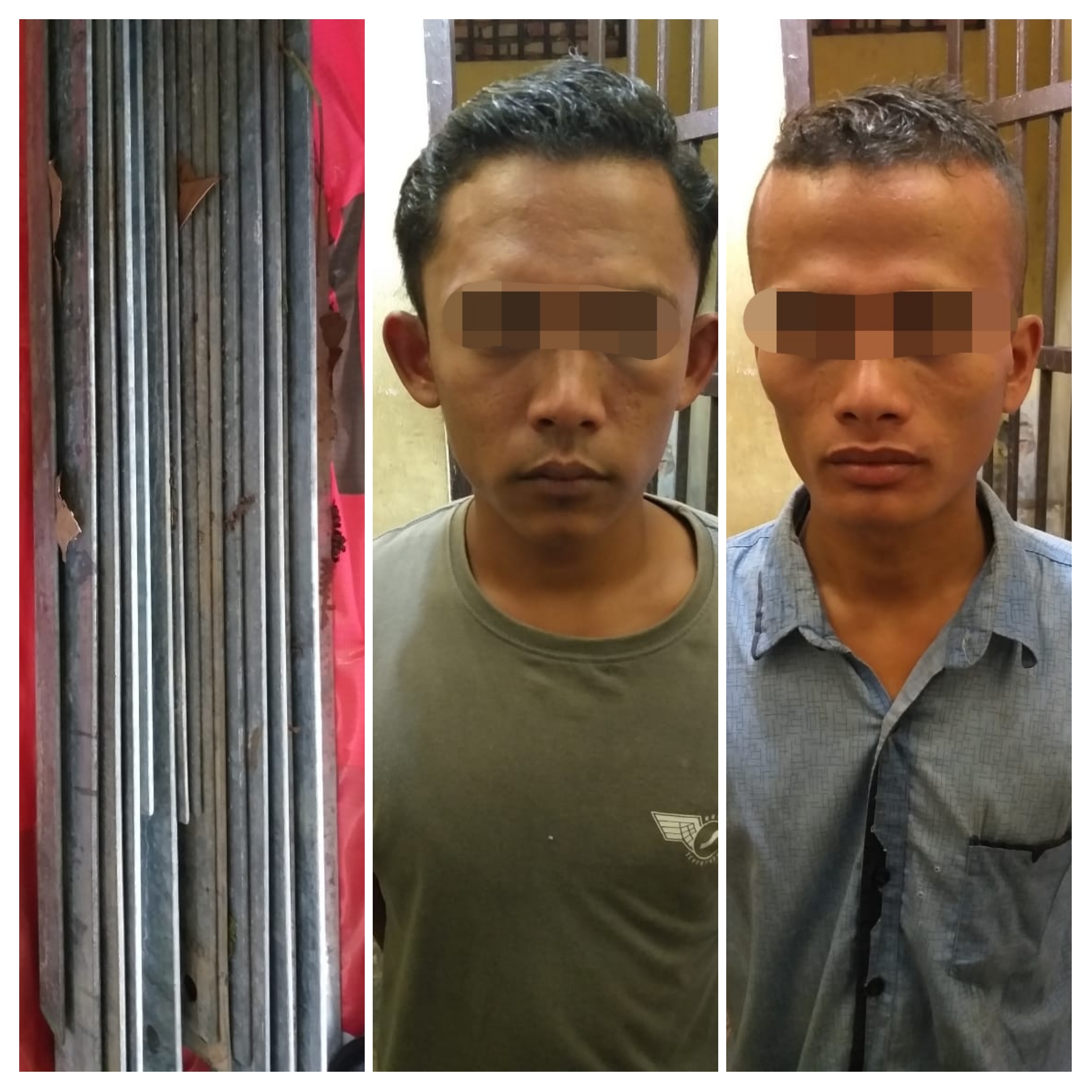Atas informasi ini Ka SPK beserta beberapa anggota Polsek langsung menuju lokasi dan menemukan 2 orang pria sedang mempreteli besi Tower Sutet dan langsung diamankan petugas.