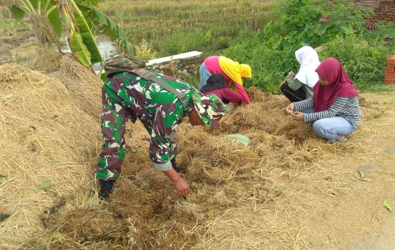 Mendapati anak-anak desa setempat sedang asyik mencari jamur merang, Serda Daryono, salah satu anggota Tim Jurnalistik TMMD Reguler, tak menyia-nyiakan kesempatan untuk nimbrung mengorek tumpukan jerami yang terletak di samping lokasi pembangunan Pos Kamling 2,5 x 2,5 meter, di Dukuh Jlubang, Pantirejo. Minggu (12/4/2020).