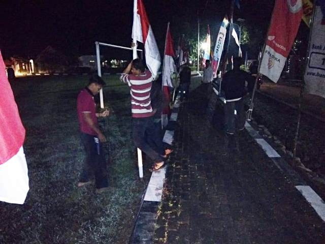 ”Beberapa hari lalu, kami sudah mempersiapkan tiang umbul-umbul dari bambu yang disumbangkan dari beberapa warga kemudian mengecatnya. Semua pekerjaan kami harus selesai malam ini juga,” tegasnya.