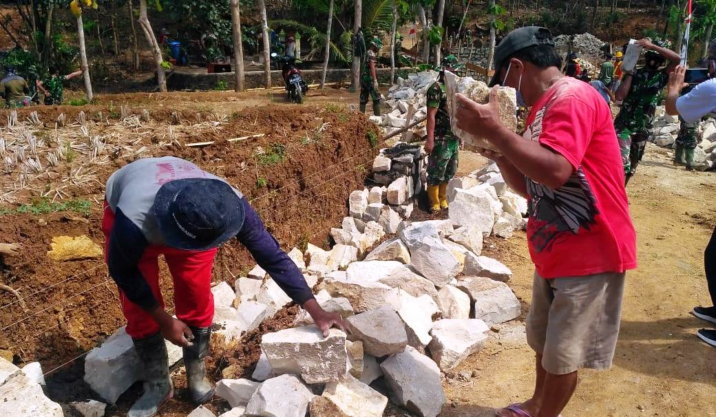 Laki-laki yang sehari-hari berprofesi sebagai petani ini rela meninggalkan pekerjaan rumah, demi ikut kerja bakti dengan sejumlah personel satgas TMMD yang tengah membangun desanya.