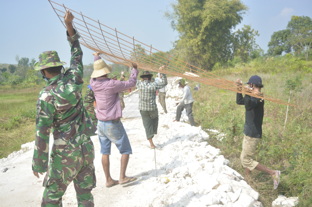 Lamongan, – Ringan sama di jinjing berat sama dipikul motto ini sudah melekat dalam etos kerja Satgas TMMD 109 Kodim 0812 Lamongan bersama warga Tebluru,” hal ini dapat dilihat dari beberapa kendala yang ditemui di lapangan saat pengerjaan sasaran fisik .