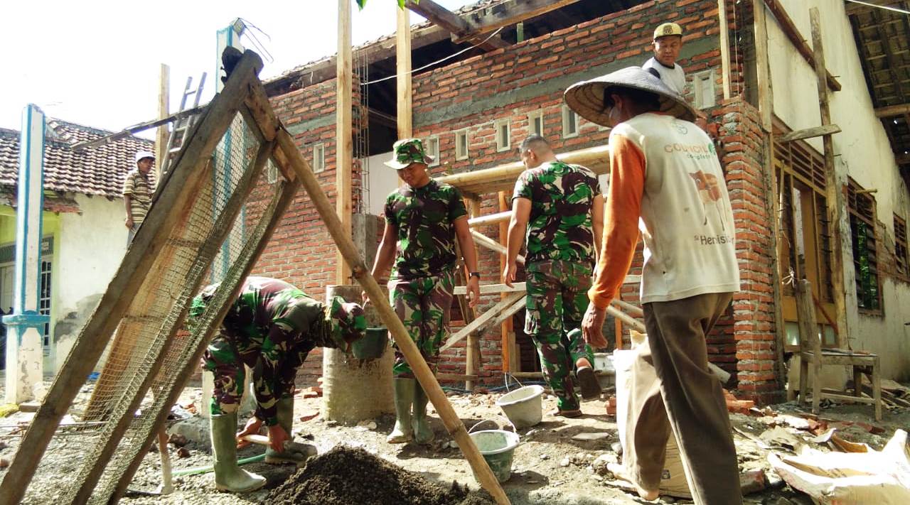Adalah Serda Rafi, dan sejumlah anggota Satgas TMMD Kodim Pekalongan yang sama-sama dari Batalyon Infanteri 407/Padma Kusuma, yang terus menggenjot proses perehabpan rumah Bu Wiwit.