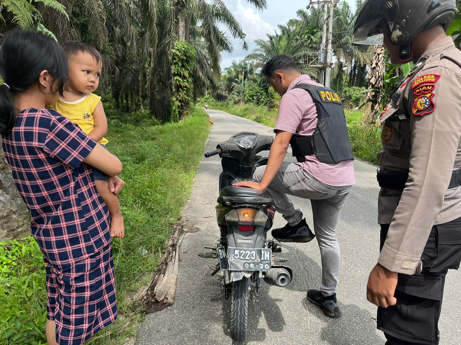 Saat Cooling System Pemilu, Polisi Bandar Sei Kijang Sempatkan Bantu Warga Motor Mogok