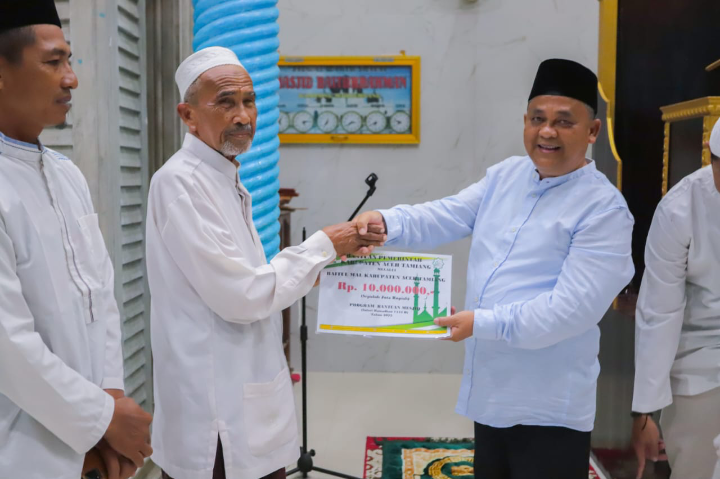 Sementara di Mesjid Baitul Rahman, Asisten Pemerintahan, Keistimewaan Aceh & Kesejahteraan Rakyat, Muslizar yang mewakili Bupati seraya menyampaikan salam dan permohonan maaf Pj. Bupati yang tidak bisa ikut rombongan safari karena masih dalam perjalanan dinas. Selanjutnya Sekda Asra dan Muslizar menyerahkan bantuan yang bersumber dari Baitul Mal Kabupaten sebesar Rp. 10 juta kepada BKM Mesjid setempat. Sekda Asra sempat menjadi imam solat Tawarih berjama’ah di mesjid Baiturrahman.