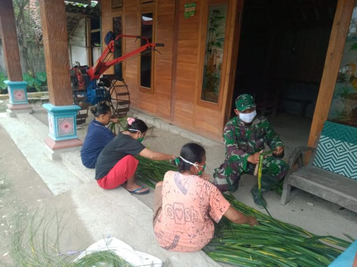 “Kami memberikan arahan kepada warga Desa Jatimulyo tentang pemasaran alas tikar pandan secara modern,” ujar Sertu Maskun. (Pendim 0813)