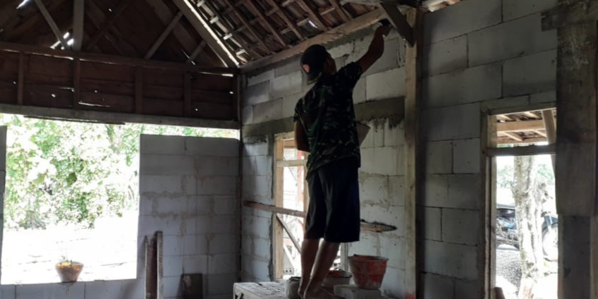 Satgas TMMD Bojonegoro Bantu Acian Dinding Rehab RTLH Aladin