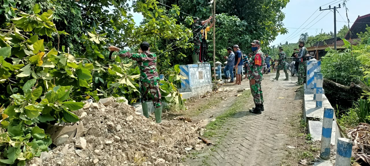 Satgas TMMD Bojonegoro Rapikan Kembali Kabel Yang Tertimpa Pohon
