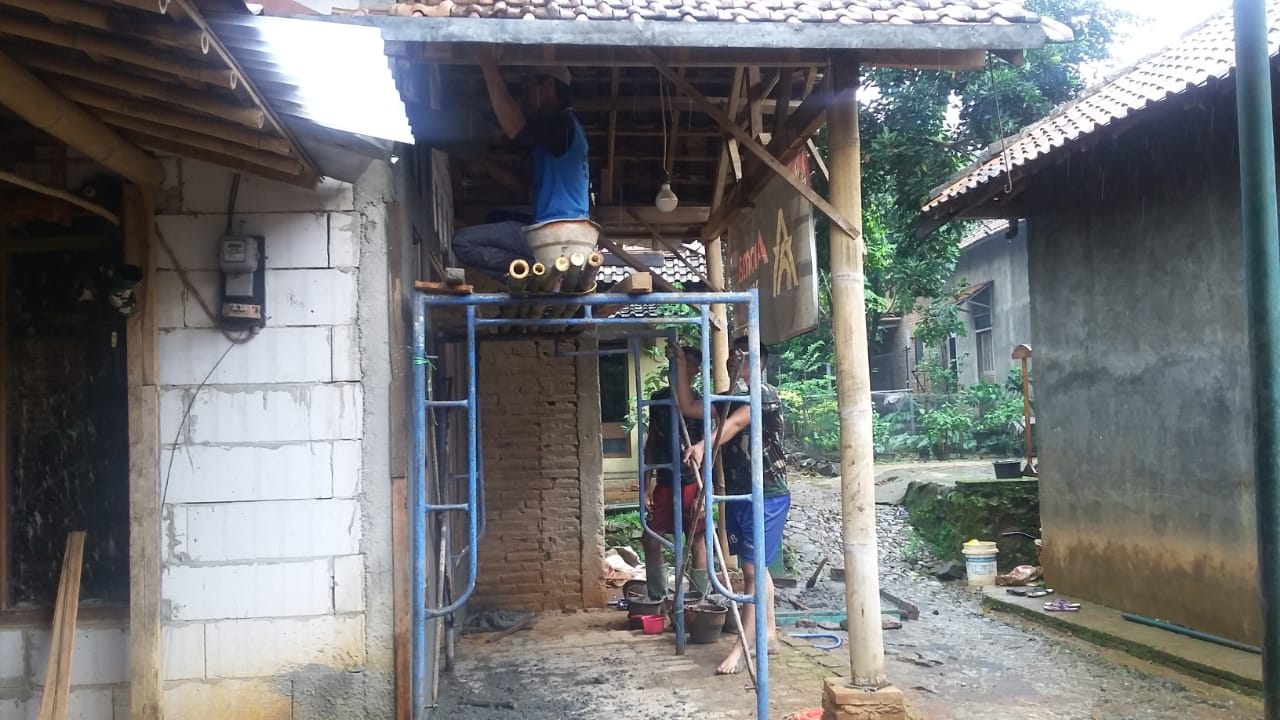 Kudus – Demi tercapainya program TNI Manunggal Membangun Desa (TMMD)Reg ke 107 Kodim 0722/Kudus.Tampak anggota satgas melanjutkan pembangunan Rumah Tidak Layak Huni (RTLH) yang selama ini ditempati oleh Bapak Pasri dukuh Talun RW 08 Desa Kedungsari Kecamatan Gebog.Sabtu 04/04/2020.