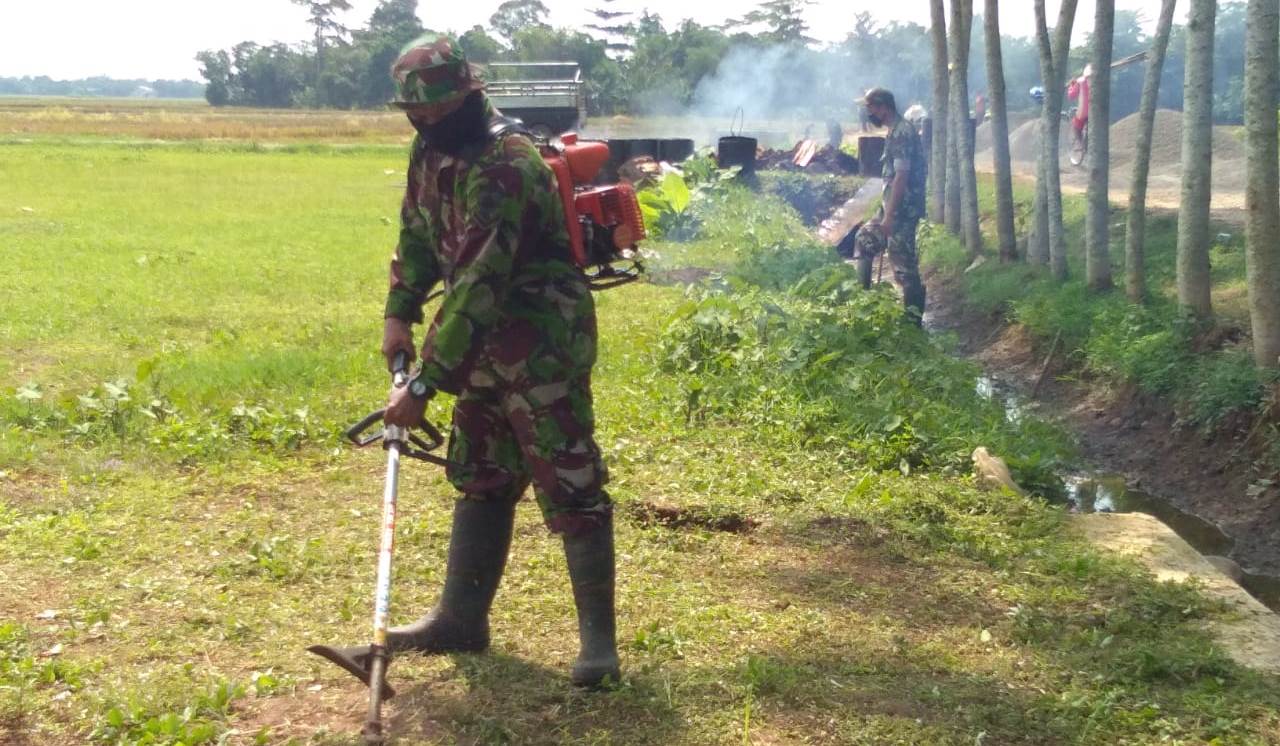 Adalah Sertu Sutrisno dan Serda Sahirudin, dua anggota Satgas TMMD Reguler Kodim Pekalongan yang dari Koramil 05/Kesesi, yang terus merapikan rumput-rumput liar di sekitar pembangunan jalan TMMD. ”Tidak termasuk dalam sasaran fisik TMMD memang, tetapi kami tetap merapikan lingkungan di sekitar sasaran fisik TMMD,” tandas Serda Sahirudin, Senin (06/04/2020).