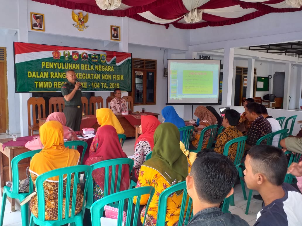 PEMALANG, newshanter.com – Guna menumbuhkan semangat terhadap nilai – nilai kebangsaan, serta mengembangkan sikap patriotisme dan nasionalisme, Pasiter Kodim 0711/Pemalang memberikan penyuluhan kepada warga desa jatiroyom yang merupakan warga desa sasaran TMMD reg 104 tahun 2019 Kodim 0711/Pemalang.kamis ( 21/3/19).