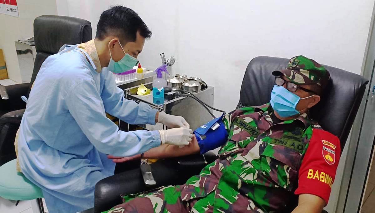 PEKALONGAN, Newshanter.com – Disela-sela kesibukannya mensukseskan TMMD Reguler ke-107 Kodim 0710/Pekalongan, di Desa Pantirejo, Kecamatan Kesesi, Kabupaten Pekalongan, Jawa Tengah, sejumlah anggota Satgas TMMD meluangkan waktu untuk mengikuti bakti sosial donor darah, di Kantor PMI Kabupaten Pekalongan, Senin(6/4/2020).