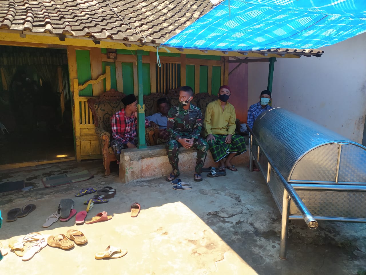 Selain anggota Satgas TMMD, hadir juga Danramil 0812/06 Ngimbang Kapten Inf Bekti Selaku Perwira Pengawas Satgas TMMD 109 Kodim Lamongan untuk melaksanakan takziah