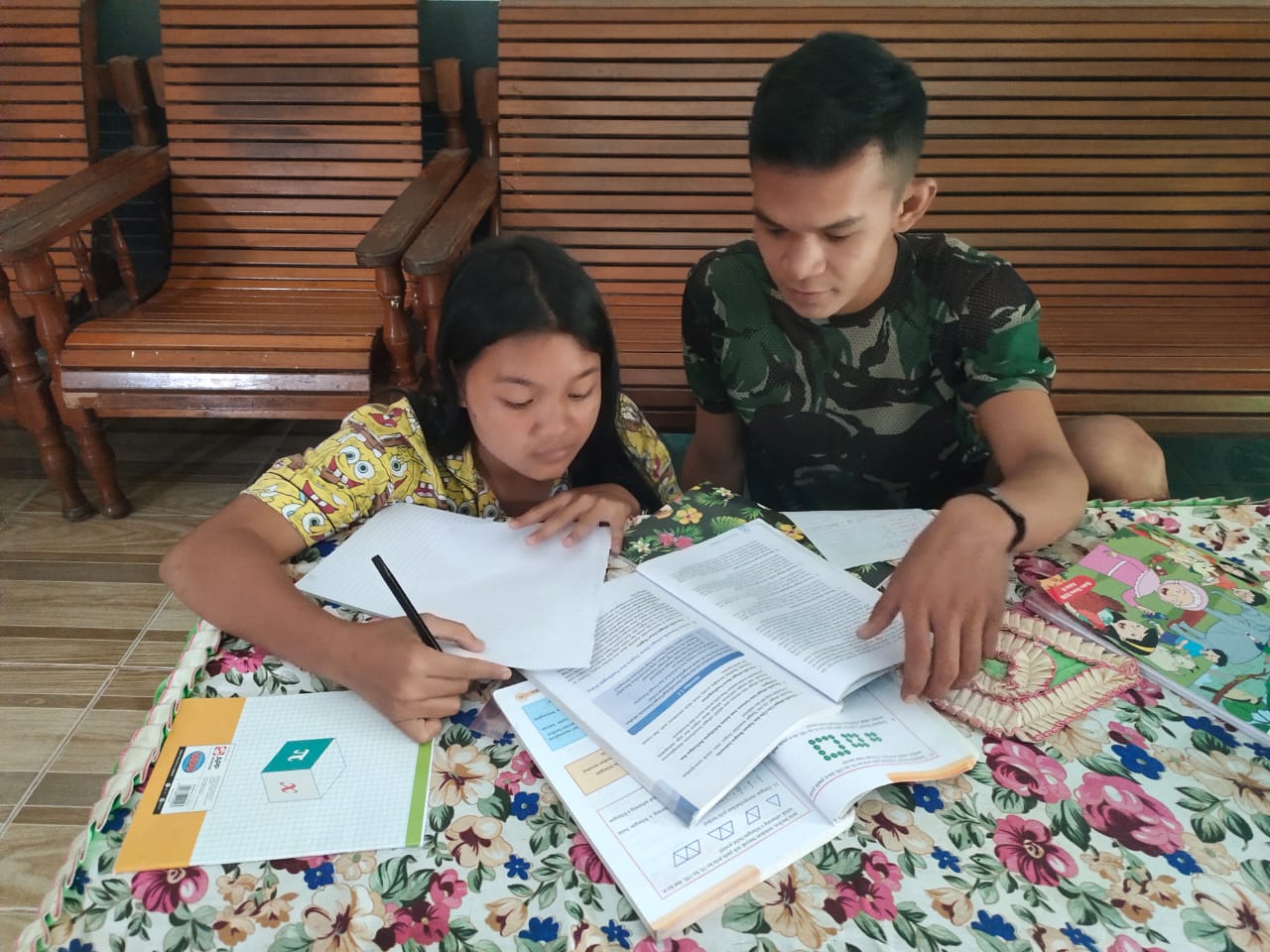Ketapang – Rabu (29/7/20) Menjelang berakhirnya kegiatan TMMD Reguler ke-108 Kodim 1203/Ketapang, Prada Arjuan membatu adik asuh belajar diDesa. Beringin Rayo Kec.Tumbang Titi Kab. Ketapang.