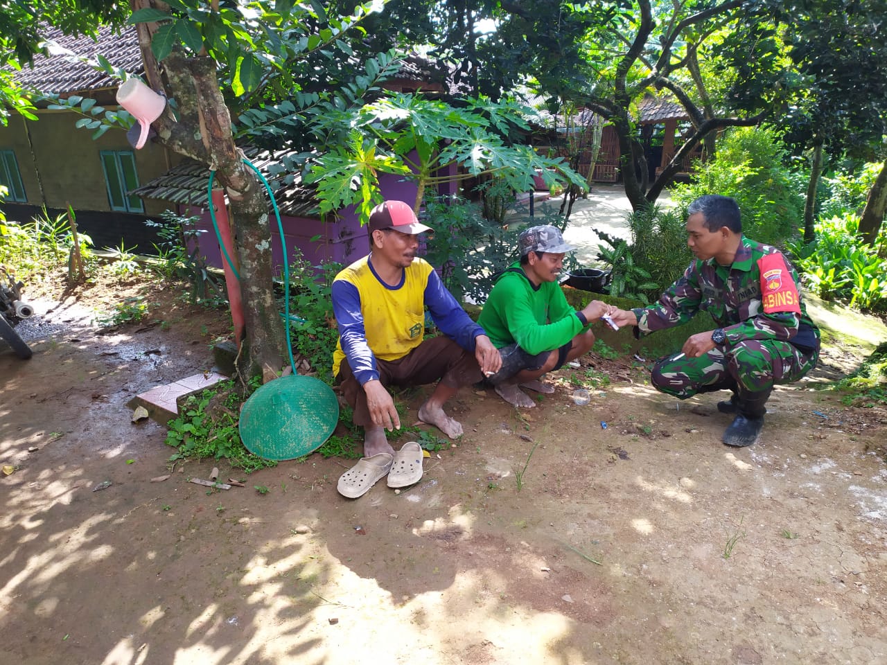 Kudus–Disela-sela Anggota Satgas TMMD dan warga merehab rumah tidak layak huni milik Bapak Sulkan di Rt 3/7 Dusun Mudalrejo tampak seorang Anggota Satgas TMMD menawarkan rokok kepada beberapa warga yang ikut bekerja di situ,cukup efektif untuk bergaul dengan kelompok orang setidaknya hal itu terbukti di lokasi TMMD Reguler ke-107 Kodim 0722/Kudus di Desa Kedungsari Kecamatan Gebog.Jumat 13/3/2020.