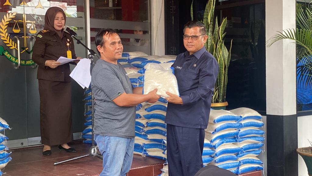 Bukittinggi, newshanter.com – Dalam rangka memperingati Hari Adhyaksa Dharma Karini ke 63, Kejaksaaan Negeri Bukittinggi menyalurakan Bantuan Beras sebanyak 3 ton dan 1,5 ton kepada masyarakat tidak mampu di 3 Kecamatan Kota Bukitinggi termasuk bantuan kepada tenaga honorer dilingkungan Kejari dan Panti asuhan, dan  1,5 ton disalurkan lagi kepada masyarakat terdampak bencana banjir dan tanah longsor yang berada di kabupaten Agam, kegiatan yang di adakan di halaman  Kejari Bukittinggi, Selasa (18/07/2023).