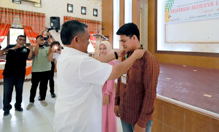Sekretaris Daerah Kabupaten Aceh Tamiang, Drs. Asra menghadiri pembukaan pelatihan Budidaya lebah Madu Kelulut (Trigona Spp) yang digelar Balai Pelatihan Lingkungan Hidup dan Kehutanan Pematang Siantar di Aula SKB setempat, Rabu, (22/02/2023).