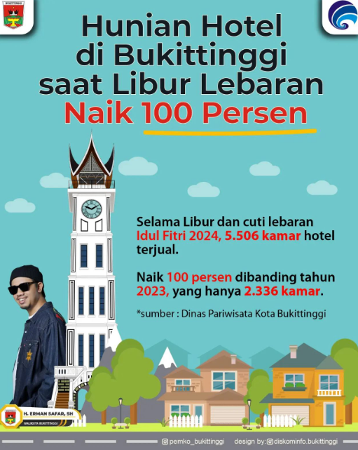 Kepala Dinas pariwisata Kota Bukitinggi Rofie Hendra mengatakan, Tingkat kunjungan hotel dan penginapan pada momen lebaran dan cuti bersama tahun ini mengalami peningkatan yang sangat signifikan dibandingkan dengan Tahun lalu. Dimana jumlah kamar terjual pada momen lebaran dan cuti bersama Tahun 2023 sebanyak 2.336 kamar.