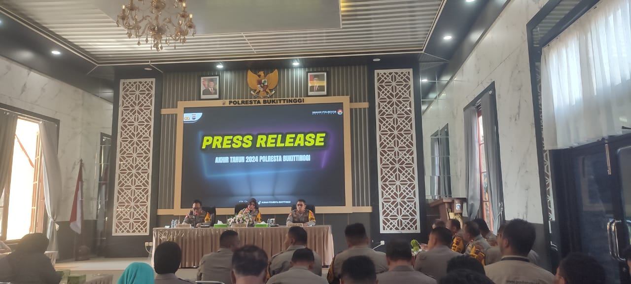 Bukittinggi, newshanter.com – Polresta Bukittinggi gelar konferensi pers akhir tahun 2024 yang di adakan di ruang hall Polresta Bukittinggi, Selasa(31/12/2024).