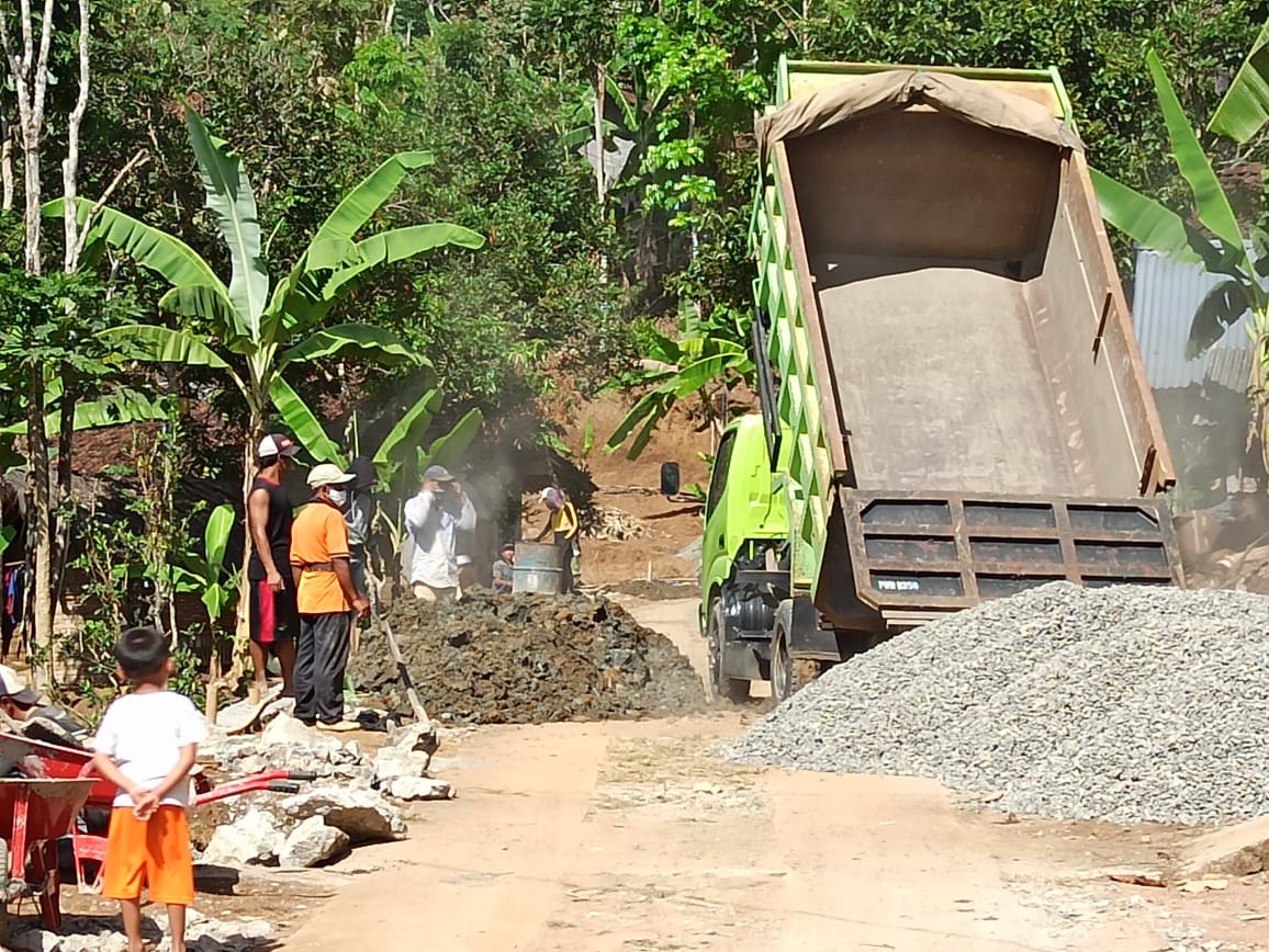 Semoga dengan droping material menggunakan truk pengecoran jalan di lokasi TMMD Reguler 109 Desa Sedayu bisa cepet selesai sesuai rencana.