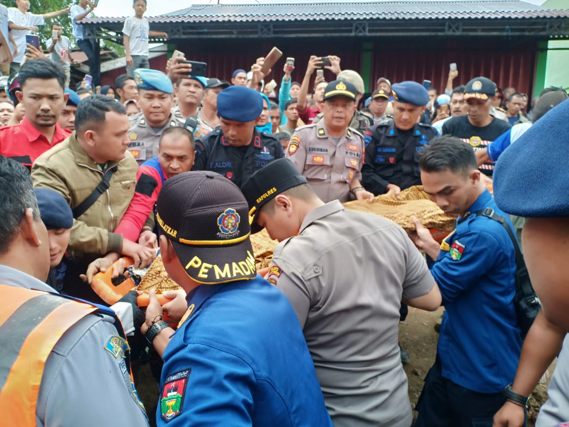 Pencarian yang di lakukan sejak dari jam 7.30 Wib Berkat Kerjasama gabunga Petugas BPBD, Damkar, PMI dan Aparat kepolisian, akhirnya pada jam 13.50 korban dapat ditemukan dalam kondisi sudah tidak bernyawa.