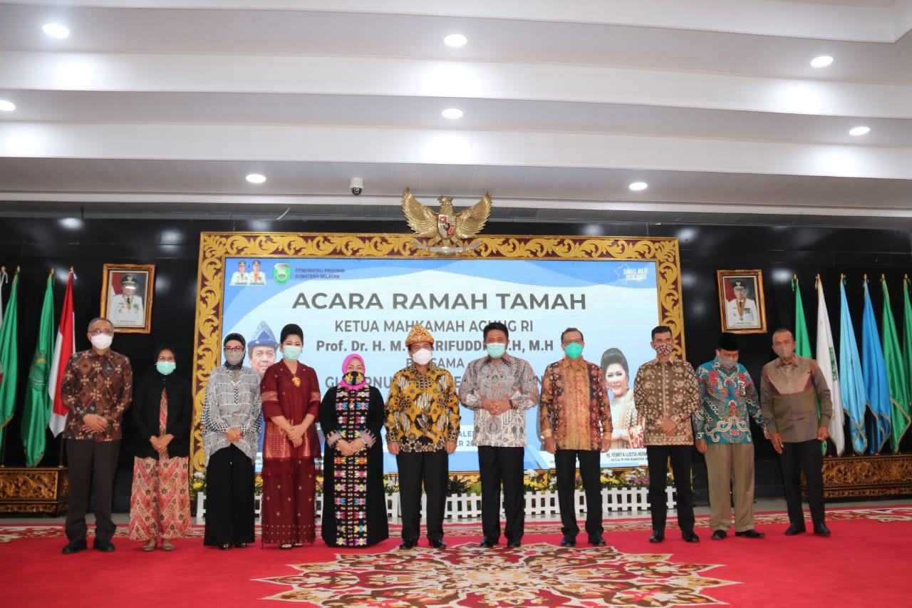Hadir dalam acara silaturahmi dan ramah tamah tersebut, Ketua Mahkamah Agung RI Dr. H. M. Syarifuddin, S.H., M.H., Para Ketua Kamar Mahkamah Agung RI, Para Hakim Agung Mahkamah Agung RI, Gubernur Sumsel H. Herman Deru, Pangdam II/Swj yang diwakili oleh Kasdam II/Swj Brigjen TNI Muhammad Zamroni, S.I.P. dan Forkopimda Sumsel.