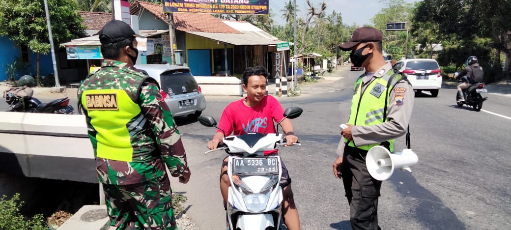 Purworejo –Untuk mendisiplinkan masyarakat dalam penggunaan masker di wilayah Kecamatan Loano Kabupaten Purworejo dalam rangka meghadapi penyelenggaraan TMMD reg ke 109 Kodim 0708 Purworejo di Desa Sedayu Koramil bersama Polsek sosialisasikan pemakian masker.Minggu.(20/09).