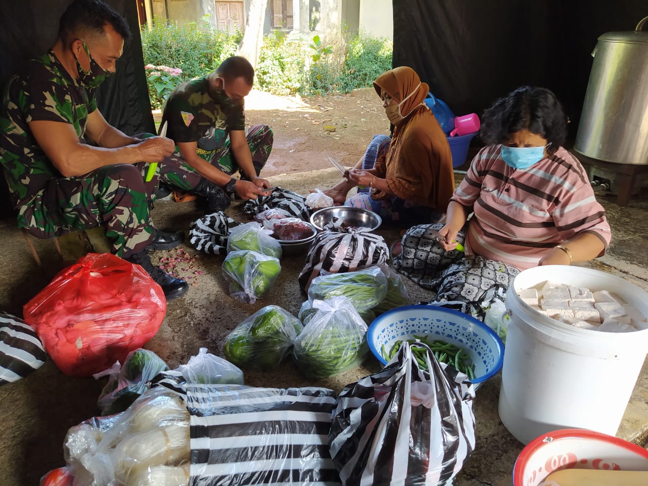 KARANGANYAR – Sertu Gatot menuturkan, dirinya mendampingi ibu-ibu mengolah beras, sayur dan lauk untuk kebutuhan dapur umum Satgas TMMD. “Untuk belanja sayuran dan bumbu dapur kemungkinan tidak akan kekurangan, alhamdulillah karena ibu-ibu di Desa Jatiwarno sudah berlangganan tukang sayuran keliling,”ujarnya.