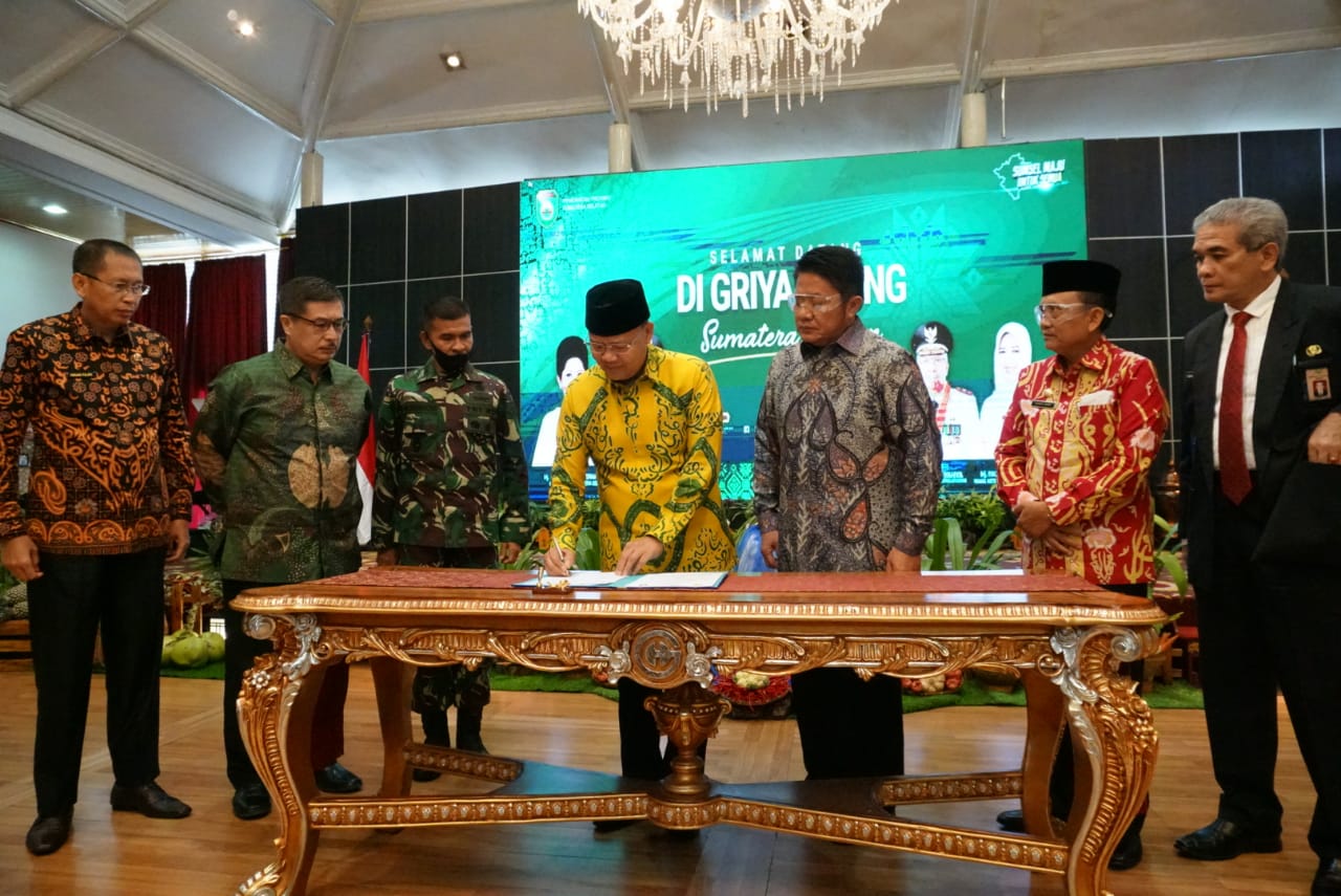 Palembang-Newshanter.com Pemerintah Provinsi Sumsel bersama Pemerintah Provinsi Bengkulu telah sepakat melakukan peningkatan konektivitas dengan membangun jalan penghubung baru sepanjang 49 km antar Provinsi Bengkulu Kabupaten Seluma dengan Provinsi Sumsel Kabupaten Empat Lawang direncanakan melalui program TNI Manunggal Masuk Desa (TMMD).Dalam rangka penguatan konektivitas antar wilayah tersebut, telah dilakukan penandatanganan kesepakatan bersama antara Gubernur Sumsel H Herman Deru dengan Gubernur Bengkulu Dr. H. Rohidin Mersyah di Griya Agung Palembang, Kamis (25/6/2020).