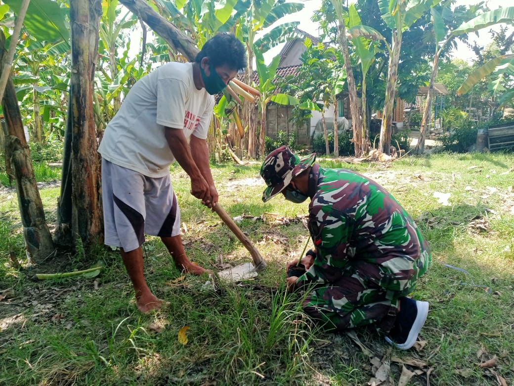 Kopda Anang Anggota Satgas TMMD Ke-110 Kodim 0813/Bojonegoro memberikan contoh kepada Bapak Ngarianto Warga RT 06 Desa Jatimulyo, Jum’at (19/3/2021).