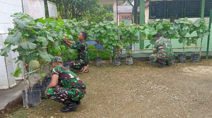 Anggota Koramil 03/Seruway jajaran Kodim 0117/Aceh Tamiang luar biasa bisa merawat tanaman melon di halaman kantor Koramil 03/Seruway, Kabupaten Aceh Tamiang. Minggu,(05/02/2023).