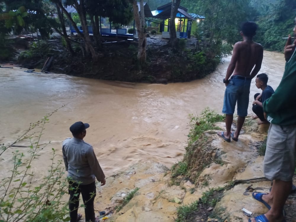 Sampai saat ini Personil Polsek Simpang Kiri bersama dengan masyarakat masih melakukan upaya pencarian di sepanjang bantaran sungai Objek wisata Pemandian gunung pandan . orang hanyut sbb: