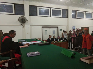 Dihadapan Jaksa Penuntut Umum (JPU) Kejari Palembang Indah Kumala Dewi SH dan Erwin Wahyudi SH, terdakwa didampingi kuasa hukumnya Suwito Winoto serta disaksikan oleh pihak keluarga terdakwa dan keluarga korban.