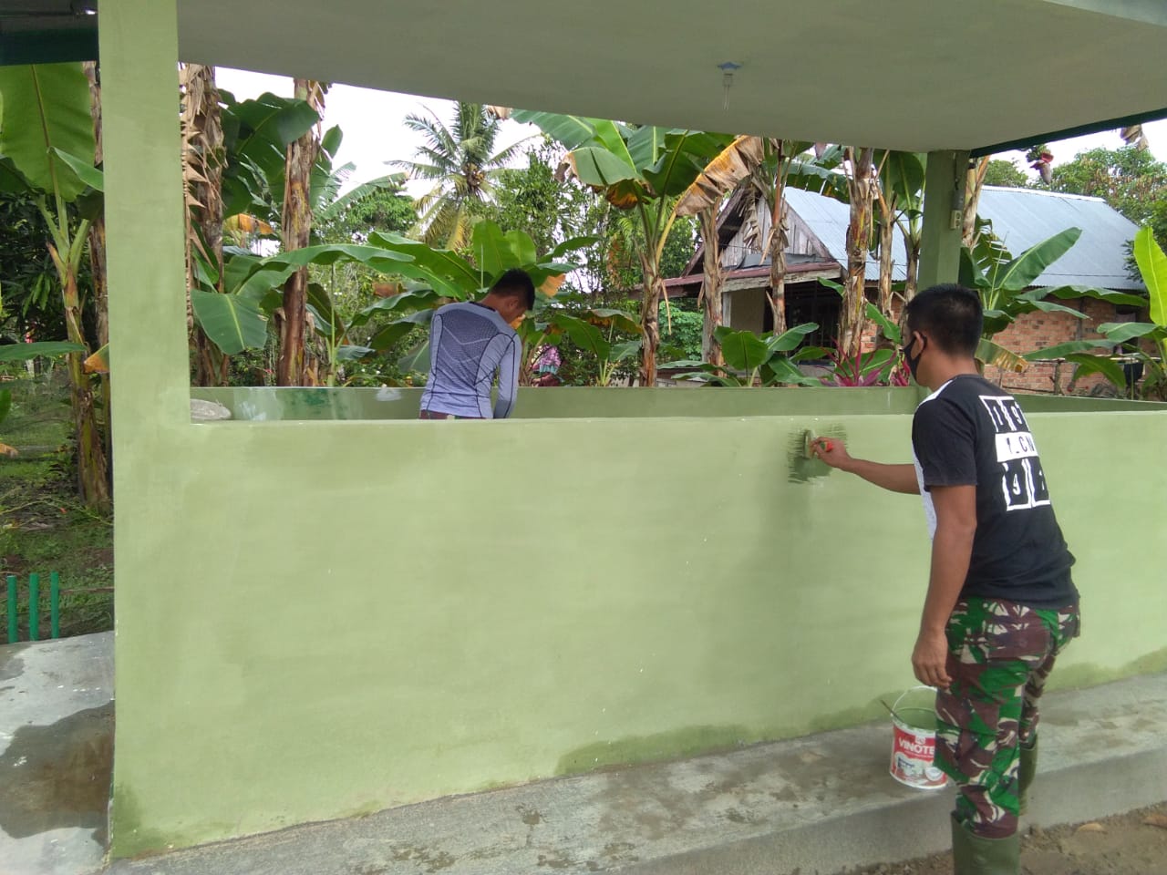 Namun, satgas TMMD melihat masih kurang rapi. Sehingga, personil satgas memutuskan untuk mengecat bagian-bagian dinding yang belum sepenuhnya tertutup cat.
