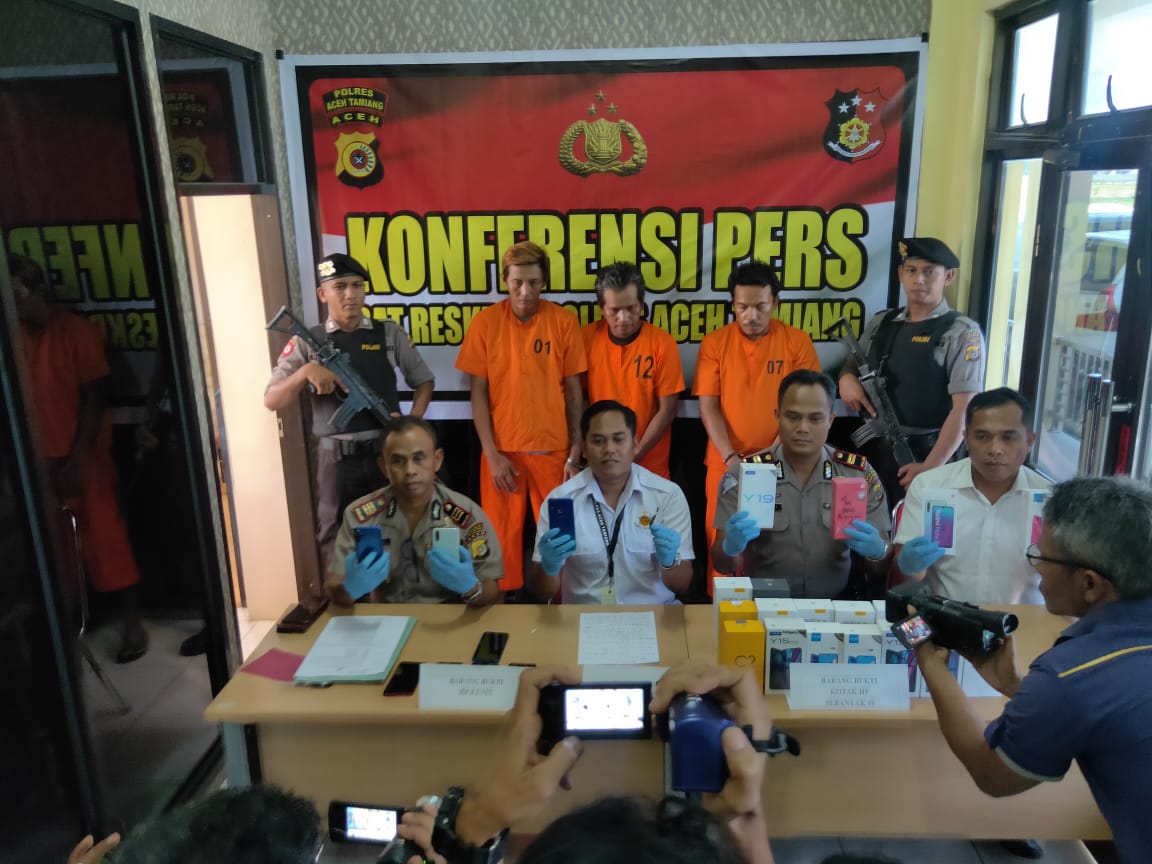 Polres Aceh Tamiang, tangkap pelaku pencurian toko handphone di Jalan Cut Nyak Dien No. 34 Kota lintang Kabupaten Aceh Tamiang, Selasa (25/02/2020).