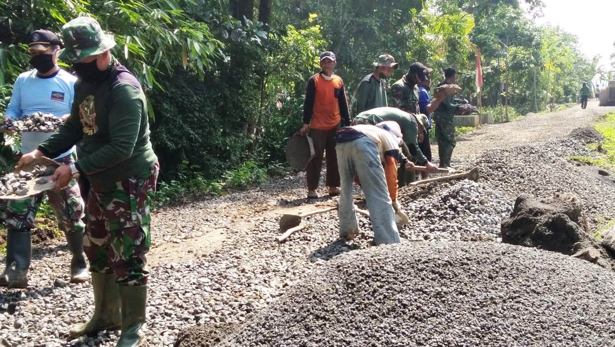PERKALONGAN, Newshanter.com – Tak ingin tercecer atau ketinggalan sepur, di H -8 menjelang berakhirnya pelaksanaan Anggota Satgas TMMD Reguler ke-107 Kodim 0710/Pekalongan , bersama warga desa sasaran, Desa Pantirejo, Kecamatan Kesesi, Kabupaten Pekalongan, Jawa Tengah, terus kebut sisa pekerjaan pembangunan jalan.