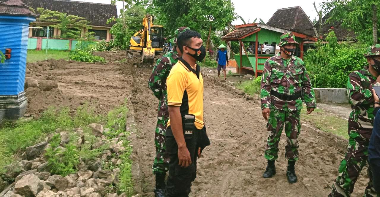 Kondisi tersebut tentu membahayakan bagi pengguna jalan, terlebih saat kondisi hujan dan malam hari. Warga bersama dengan Anggota Satgas TMMD 110 Kodim 0813 Bojonegoro, Jawa Timur, secara gotong royong bekerja mengumpulkan sisa-sisa paving dari pembongkaran jalan.
