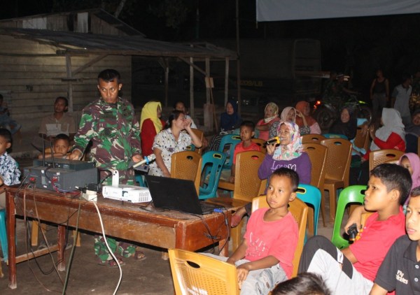 Selaim membangun sarana infrastruktur, Satgas TMMD juga selalu berbaur dengan masyarakat malam harinya. Dengan berbagai kegiatan Satgas menghibur masyarakat. Salahsatunya dengan menggelar nonton bareng (Nobar) di Poskotis TMMD.