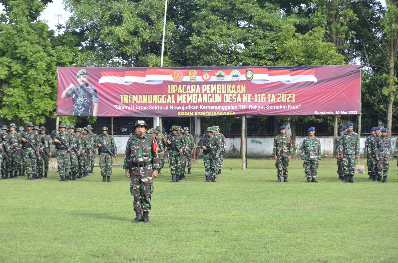 Surakarta – Bertempat di Lapangan Prawit Jl. Sriwijaya Utara II RT. 1 RW. 2 Kelurahan Nusukan, Kecamatan Banjarsari, program TNI Manunggal Membangun Desa /TMMD Reguler Ke-116 Tahun 2023 Kodim 0735/Surakarta secara resmi dibuka,Rabu (10/05/2023).