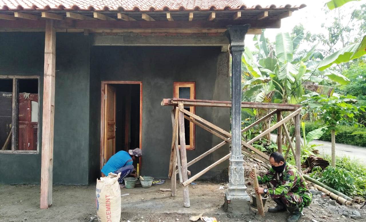 ‘’Kehadiran Satgas Sahirudin khusus menangani atau mempercantik tiang teras rumah Suwarni. Sementara anggota Satgas lainnya, dan tukang profesional menangani pengacian tembok rumah,’’ jelas Babinsa Sutrisno, Selasa (07/04/2020).