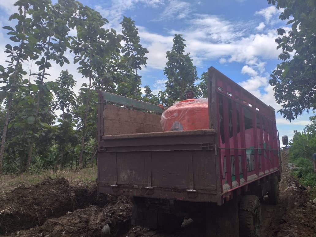 “Tangki air atau tandon/toren air sangat bermanfaat dalam keadaan darurat seperti ini, kita datangkan toren ini untuk menyimpan air yang juga digunakan untuk membuat adukan material cor karena lokasi pembuatan talud dan saluran drainase jauh dari sumber mata air,”jelasnya.