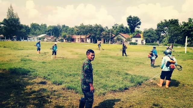 “Ada sepuluh alat pemotong rumput, anggota Kodim 0711 Pemalang dan personel UPJI dibantu masyarakat bersama sama merapikan dan membersihkan rumput di lapangan desa Jatiroyom.” jelas Danramil Bodeh Danramil, Rabu (20/2/2019).