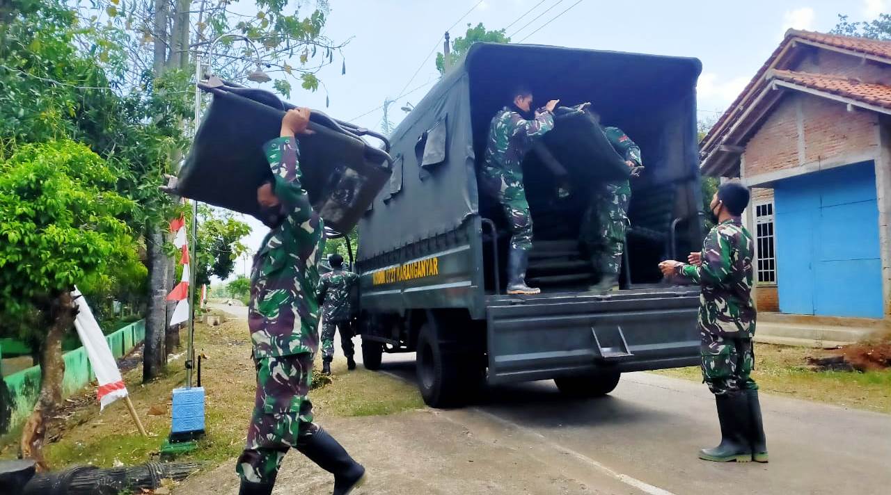 KARANGANYAR – Menjelang pembukaan TMMD Reguler Ke-109 Kodim 0727/Karanganyar, Korem 074/Warastratama, Desa Jatiwarno, Kecamatan Jatipuro, Kabupaten Karanganyar, Jawa Tengah, sejumlah personil dari Kodim setempat, mempersiapan sejumlah tempat tidur untuk para pasukan.