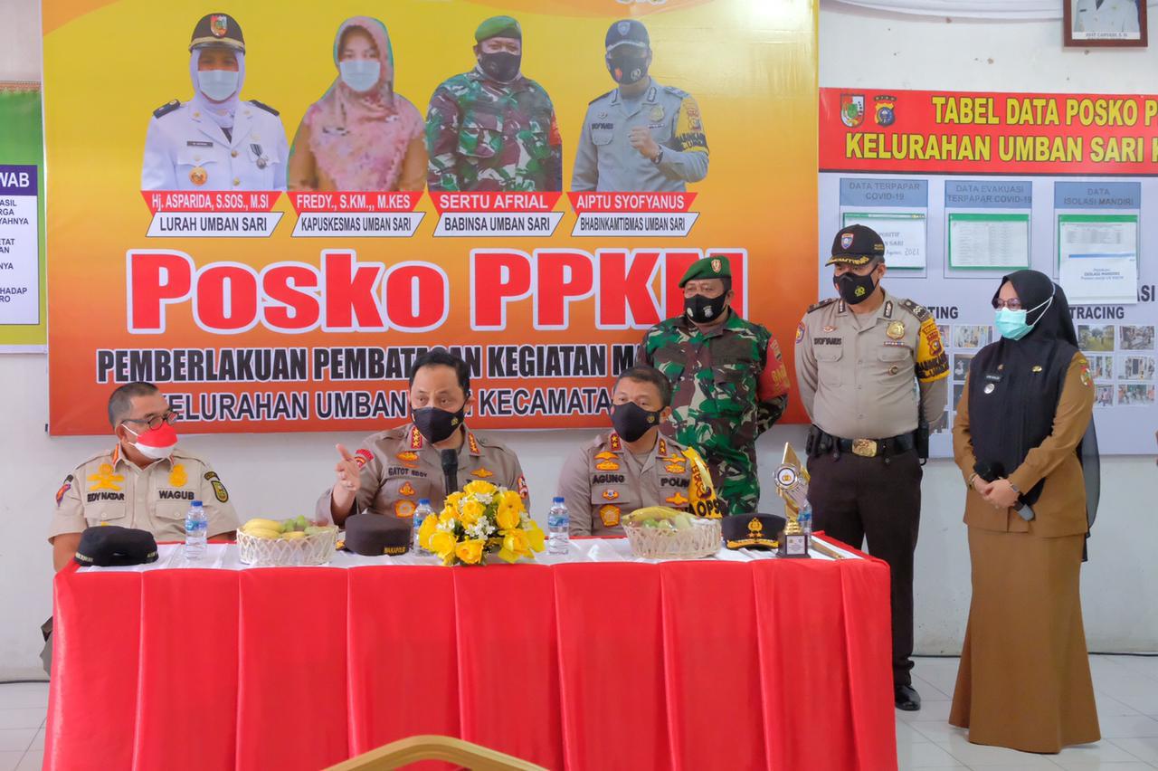 “Saya menyampaikan terimakasih dan apresiasi kepada Forkopimda Provinsi Riau dan Forkopimda Kota Pekanbaru dalam upaya penanganan covid 19, saya tadi sudah mendengar penyampaian dari Ka Posko PPKM Umban Sari tentang apa saja langkah yang sudah diilakukan untul bisa memutuskan mata rantai penyebaran covid 19,” ungkap Komjen Gatot.