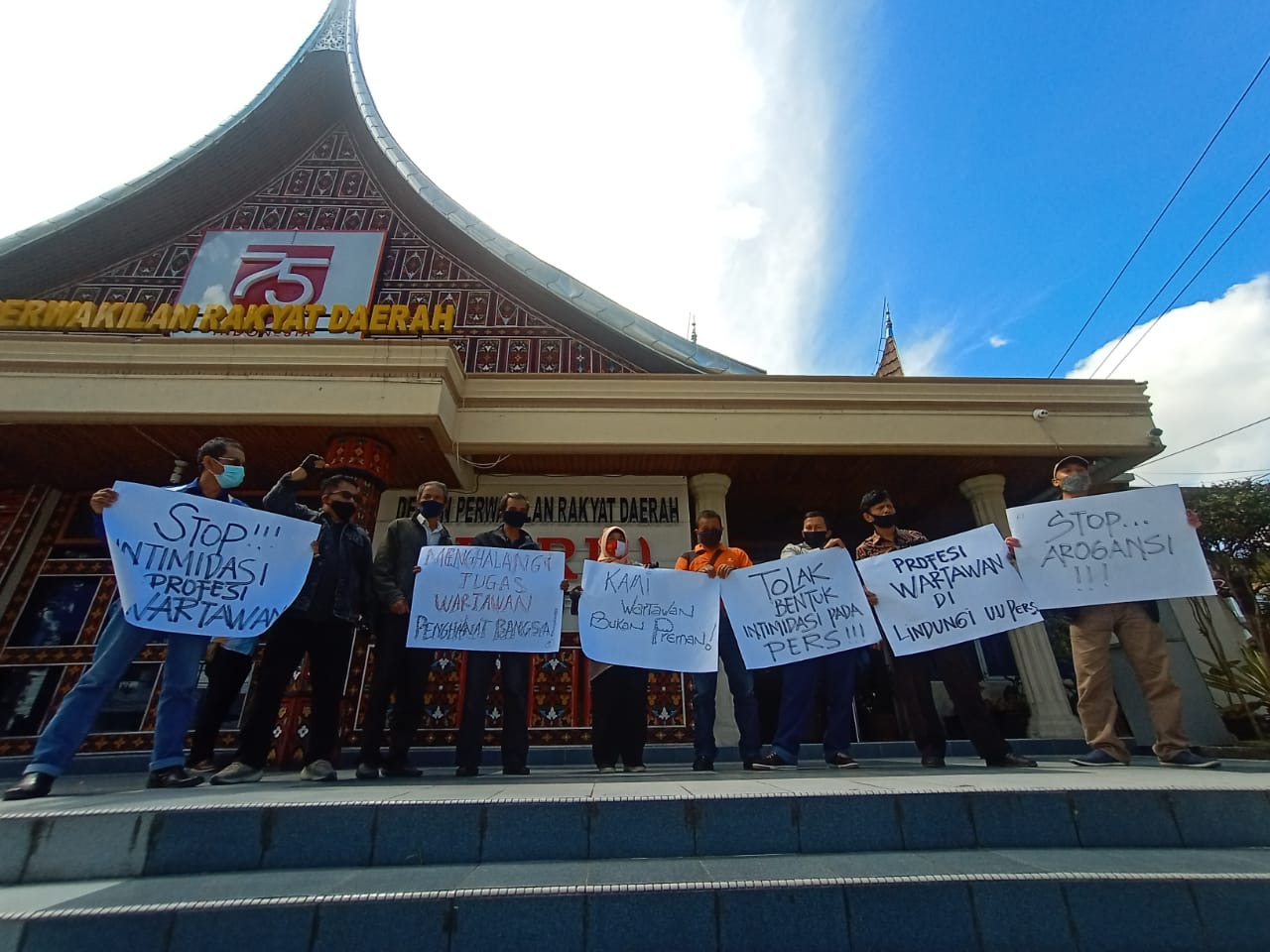 Aksi damai tersebut dilakukan terkait dengan dugaan adanya salah seorang wakil ketua DPRD Bukittinggi, Rusdi Nurman yang juga Ketua DPC Partai Demokrat Bukittinggi mengintimidasi Profesi Wartawan di saat mewawancarai salah seorang mantan Anggota DPR-RI yang sedang mencalonkan diri sebagai Gubernur Sumbar di wawancarai salah seorang wartawan Online Bakab.com Fadly Reza, di Jalan Minangkabau, Kota Bukittinggi, pada Sabtu kemaren (5/12).