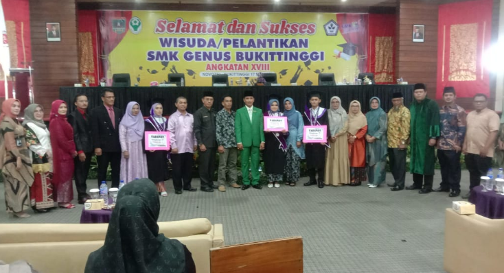 “Saya mengucapkan terima kasih kepada orang tua wisudawan atas kepercayaan telah menitipkan anaknya di Kota Bukittinggi yaitu di SMK Genus untuk menimba ilmu selama 3 tahun. Ini merupakan tempat yg tepat, pas dan hebat. Tidak semua orang bisa masuk dan diterima di SMK Genus,” jelasnya