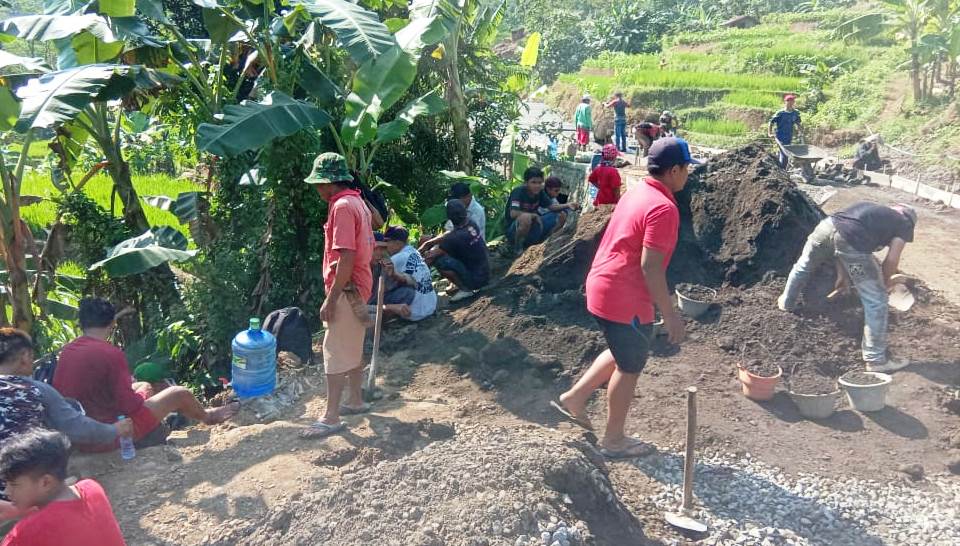 BANYUMAS – Sejumlah warga yang ikut terlibat di pembangunan jalan TMMD, saat istirahat siang memilih tinggal di lokasi TMMD. Hal itu disebabkan, mereka tidak ingin ketinggalan bekerja selanjutnya, mengingat lokasi pembangunan jalan di Desa Petahunan, Kecamatan Pekuncen, Kabupaten Banyumas, Jawa Tengah, salah satu sasaran fisik TMMD Reguler ke-108 Kodim 0701/ Banyumas, jauh dari pemukiman penduduk.